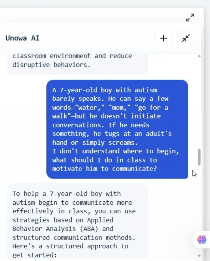 This is exactly why the MIKKO AI Agent was created — a digital assistant integrated into UNOWA’s LMS platform. It automates one of the most labor-intensive processes in inclusive education: the development of an Individual Development Plan (IDP).
